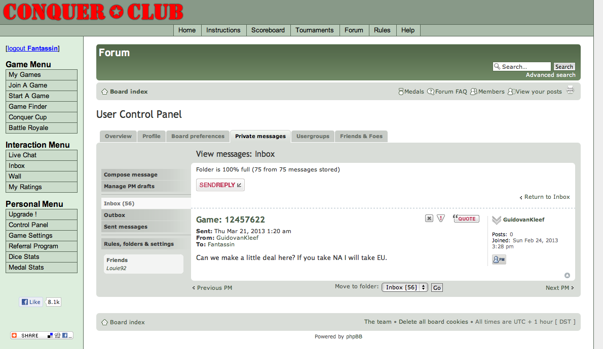 viewtopic.php?f=5&t=1882202013-03-28 18:52:54 - Fantassin: Blue offered me an alliance early on and I did not reply, that's why he suicided on me I assume.